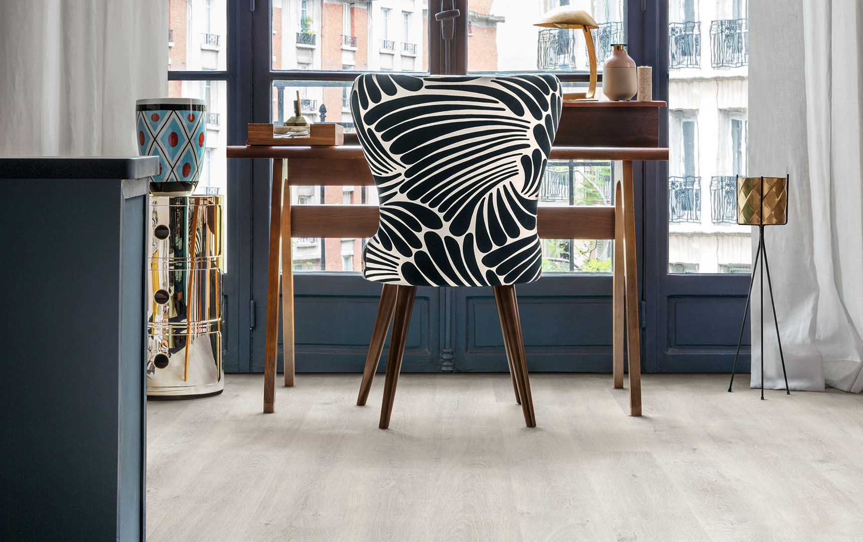 新一代防水木地板——半亚光表面。采用个性十足的灰色系,在审美上表现为简洁、时尚、大气,在空间设计上则体现为自由、无拘无束感觉的创造,为您摒弃繁琐,让一切从简。